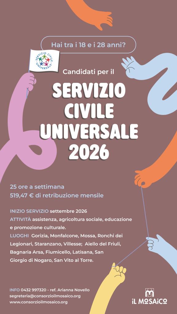 PRIMA DI FARE DOMANDA CONTATTA LA NOSTRA SEDE AL NUMERO 0432/997320 (ARIANNA NOVELLO) O SCRIVICI A segreteria@consorzioilmosaico.org